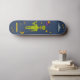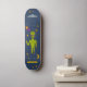 Crear un regalo personalizado fuera de este mundo. Esta cubierta de skateboard incluye ilustraciones de un alienígena del espacio verde limón, un ufo o platillo volador, estrellas, una luna y planetas y está lista para ser personalizada con un nombre.