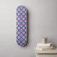 Diseño de patrón violeta y azul transparente con estrellas repetidas y formas hexagonales, así como elementos blancos.