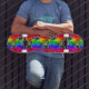 Skateboard Añadir nombre, mariposas en el atardecer rojo amar