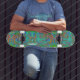 Skateboard Aqua, Naranja y Green Groovy Resumen de arte retro