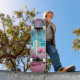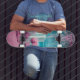 Foto de infrarrojos tomada en un parque londinense. Las palmeras rosas, junto con el cielo azul, recuerdan un día cálido en Florida... ¡sólo falta un flamenco rosa! Este skateboard fue diseñado como arte mural para colgar verticalmente y animar tu pared.