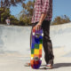 Celebra tu Orgullo, apoyo o amor al color con este fresco patrón de arco iris a cuadros. Cada fila de cuadrados de color arcoiris cambia un cuadrado a la derecha para crear un colorido patrón a cuadros. Los cuadrados de rojo, naranja, amarillo, verde, azul, añil y violeta forman una secuencia de rayas escalonadas diagonales. Imagen de 9000 x 7000 píxeles creada digitalmente. Copyright ©2012 Claire E. Skinner, todos los derechos reservados.