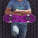Skateboard Arcoiris rosa en óptica de cuero de piel de elefan