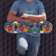 Arte de flores abstracto brillante dibujado a mano y pintado en papel de arte. Luminoso y colorido.