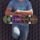 Arte fractal, moderno, abstracto y colorido. Un patrón inusual de fuego alrededor de un centro llamativo. Diseñar para tu skateboard y más.