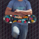 Esta tabla de skate presenta una mezcla vibrante de formas geométricas de arte pop con las máximas inspiradoras "Conduce Rápido" y "Vive Libre". Perfecta para patinadores que valoran la velocidad y la libertad, este diseño de alta energía combina colores llamativos con un estilo de arte urbano para hacer una declaración.