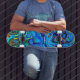 Exprese su estilo único con nuestra cubierta de patinaje artístico trippy abstracto, con un diseño azul fresco. Disponible únicamente en cubierta o como patineta completa con camiones y ruedas, este tablero es perfecto para patinadores que quieran sobresalir. Pasee con estilo y disfrute de la combinación perfecta de arte y actuación con este destacado patineta.