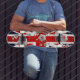 Monopatín ultra fresco de Union Jack que ofrece los fanáticos del fútbol británicos.