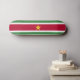 Este diseño presenta la bandera nacional de Surinam (conocida oficialmente como República de Surinam), un país en la costa del noreste del Atlántico de Sudamérica. Suriname está rodeado por el océano Atlántico al norte, la Guyana Francesa al este, Guyana al oeste y el Brasil al sur. Surinam es el estado soberano más pequeño de Sudamérica. La mayor parte de la población del país vive en la costa norte, en la región de Paramaribo, la capital de Suriname y la ciudad más grande.