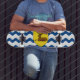 Patinaje con diseño con una bandera del condado histórico de Hertfordshire, en Inglaterra, Gran Bretaña; bandera con un ilustracion de un escenario en un escudo amarillo sobre fondo ondulado blanco y azul
