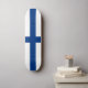 Este diseño presenta la bandera nacional de Finlandia (conocida oficialmente como República de Finlandia), que es un país nórdico situado en el norte de Europa. Finlandia comparte fronteras terrestres con Suecia al oeste, Rusia al este y Noruega al norte; el país también está definido por el Golfo de Bosnia al oeste y el Golfo de Finlandia del Mar Báltico a través de Estonia al sur. Helsinki es la capital de Finlandia y la ciudad más grande del país. Otras ciudades y pueblos importantes de Finlandia son Espoo, Tampere, Vantaa, Oulu, Turku, Jyväskylä, Lahti, Kuopio, Kouvola, Pori, Joensuu, Lappeenranta, Hämeenlinna, Vaasa, Rovaniemi, Seinäjoki, Mikkeli, Kotka y Salo.
