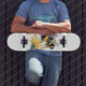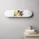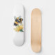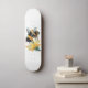 traditional watercolor artwork of a big honey bee collecting pollen from a yellow flower on a white skateboard