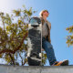 Patinaje de montaña azul y negra. Diseño de impresión de montaña azul y negra.