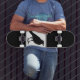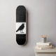 Un negro gótico ilustrado, cuervo en patineta negra.