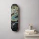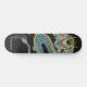 Patineta de dragón de arte asiático atrevida personalizada con tu nombre en un tipo sans serif rojo. Dorado azul y negro.