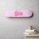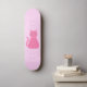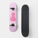 Este impresionante skateboard presenta una imagen de arte digital de un gato rosado de bonito con una cola rizada. Sus ojos son rosa pálido con pupilas negras y tiene pestañas negras largas. Ella lleva un arco rosado en su cabello y un hermoso collar de perlas alrededor de su cuello. El diseño es perfecto para celebrar a una niña.