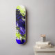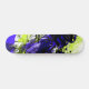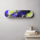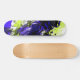 Un diseño único en negrita morado y verde con un tigre mirando fijamente al medio. Un moderno diseño de skateboard.