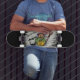 Skateboard Bruja, gato, murciélago y calabaza, Feliz Hallowee