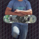 Un diseño abstracto de un buceador con tonos pastel y tonos vintage