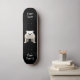 Un personalizado de bulldog blanco con texto para personalizar sobre un fondo negro.