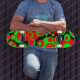 Un interesante y divertido diseño abstracto compuesto de burbujas circulares como formas en rojo y verde vibrante que contrasta sobre un fondo negro. Hecho a partir de un vector original y salida a 300 ppp para garantizar la mejor calidad de impresión.