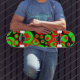 Un interesante y divertido diseño abstracto compuesto de burbujas circulares como formas en rojo y verde vibrante que contrasta sobre un fondo negro. Hecho a partir de un vector original y salida a 300 ppp para garantizar la mejor calidad de impresión.