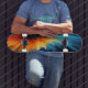 Resumen El patinador Burst Color Burst Si estás haciendo moldes en la media tubería o en los kickflips en la calle, esta competencia en forma de tablero tiene el pop supremo! Nuestras tablas son fabricadas con madera de arce resistente de la mejor calidad e impresas con un método exclusivo para hacer que tu skate sea el mejor del mundo entero.