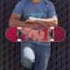 Skateboard Cabecera roja en el tablero de patinaje controlado