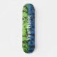Personalizar este skateboard con tu nombre o dicho. Patrón de cráneo verde y azul.