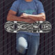 ¡Estos cráneos góticos están atrapados en una jaula tratando de liberarse! Este diseño de cráneo hace una patineta malvada.