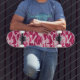 Este patinador de camo femenino presenta un patrón de camuflaje en tonos rosa oscuro y rosa pálido.
