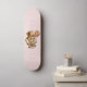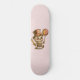 Este ilustracion presenta un esqueleto de chibi que corre a un carnaval sosteniendo un globo y una espada de madera de estilo vintage.