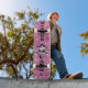 Cráneo rosado lindo y bandera pirata con las flores y los corazones, con el texto del CHICA del PATINADOR.