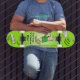 Esta patineta verde limón seguramente atraerá la atención uno o dos. Cuenta con Tom, el propietario del Dinero de Pollo Tom "A", que es el hogar del Pollo en un palo y de esa Salsa Especial. ¿Quieres estar listo para ir al patinaje al momento de la entrega? Seleccione su tamaño preferido en la opción de tamaño de cubierta para que se adapte a lo que desea hacer y seleccione la opción de dirección de rueda. Por supuesto, sólo puedes comprar la cubierta y añadir tu propio camión y ruedas o simplemente colgarla en tu pared como una obra de arte única que tendrá a la gente hablando.