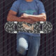 Chihuahua skateboard with black and white bones. Let's go!