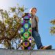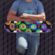 Funky Spunky Color Circles es una exhibición de hermosos colores vibrantes tan divertidos, tan torpe que es como caramelos para tus ojos. En filas de varios colores azul, amarillo, rojo, rosa, verde y morado sobre un fondo negro.