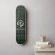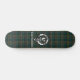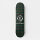 Estiloso skateboard presenta el distintivo de Escudo del clan escocés Cockburn y texto de personalizable sobre fondo tartán