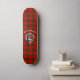 Skateboard presenta placa de escudo del Clan Escocés MacQuarrie y texto de personalizable sobre fondo tartán
