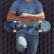 Un monopatín clásico colorido que ofrece los lirios de agua hermosos, pintados por el pintor impresionista francés Claude Monet.