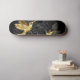 Colibríes con joyas negras y doradas sobre un fondo gris adornado con plantas. Aves de joyas. Ave dorada. Ave dorada.