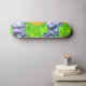 Este tablero llama la atención por sus colores vivos verde, azul y amarillo.