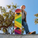 This vibrant abstract background features layered geometric shapes in various colors. The design creates a dynamic and modern aesthetic for the free souls.