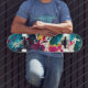 Skateboard Colorful Abstract Splatter Paint Teal and Magenta