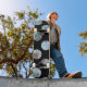Skateboard Coloridos círculos rojos verdes sobre negro