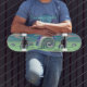 ¿Un paisaje con extrañas conchas metálicas tal vez los fósiles de antiguas conchas trilobitas de skateboard? :) Diseño 3d CGI, tamaño completo de 33" x 9" a 300 ppp de muy alta resolución.