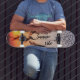 Diseño de patineta personalizado. Bonita pizarra en color con un texto negro.