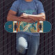 Skateboard Crane Bird with Mountains and Fall Trees Japanese