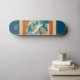 This monogrammed skateboard features a stunning white red and black crane against blue and teal mountains with fall trees tipped in gold. Heavily influenced by traditional Japanese art (Ukiyo-e style), this red-crowned crane symbolizes longevity and good fortune. One monogram initial appears in gold-tipped orange with bands of gold and orange as accents. Make sure to type your information in the Personalize box.