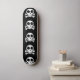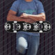 Skateboard cráneo espeluznante sobre un fondo negro