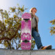 Trío de cráneos flameantes en tonos rosas con un fondo con motivos rosas. El texto dice "PIEL DE NIÑO" - ¡EL CHICA REGLA!